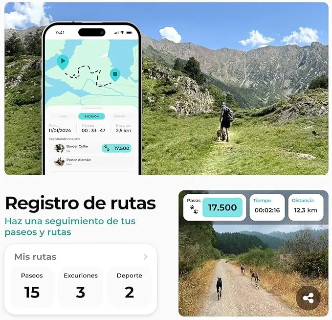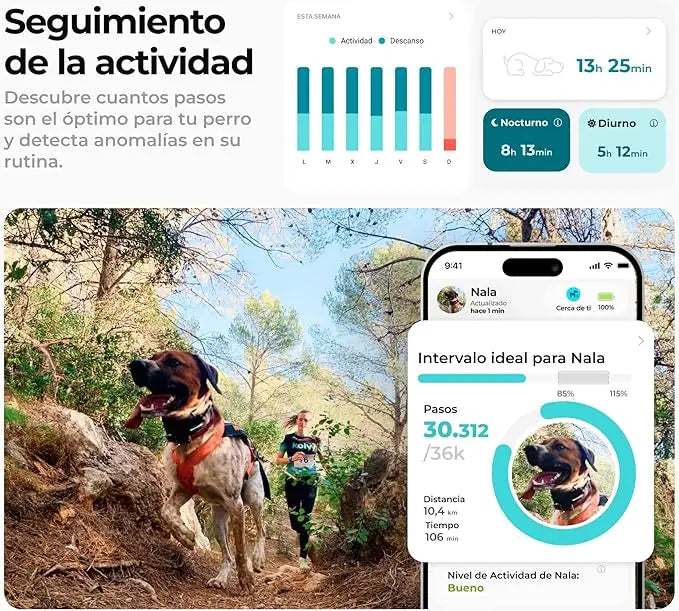 Suscripción gratuita: Localizador GPS para perros en tiempo real para rastrear a tu mascota desde cualquier lugar, monitorizar su actividad diaria para garantizar su bienestar, registrar todas sus rutas y paseos, y disfrutar de la flexibilidad de elegir y gestionar tu plan de suscripción desde la app sin compromisos. Cancela en cualquier momento.
