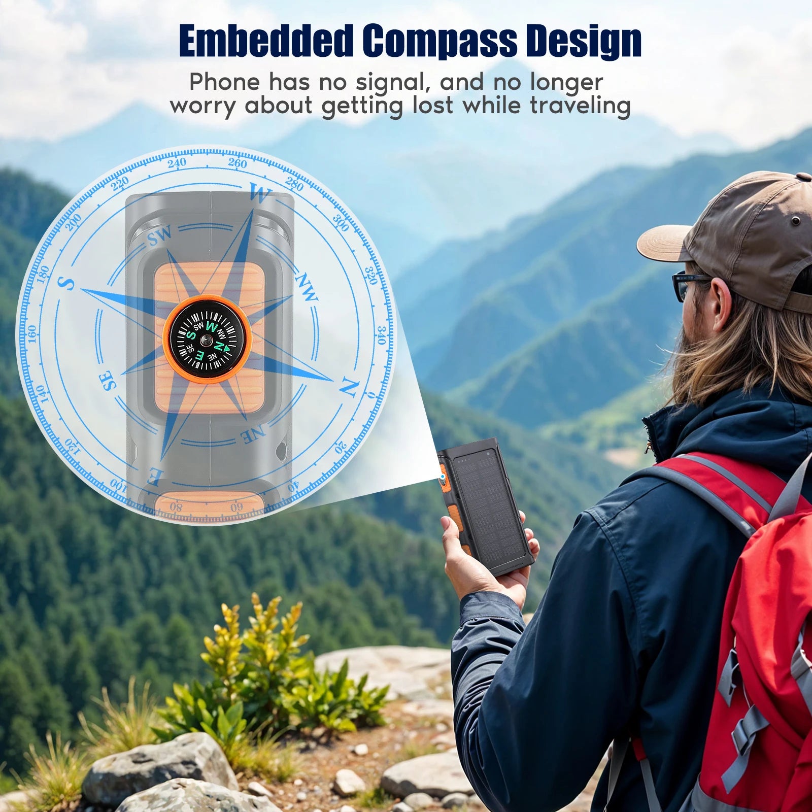 Banco de energía solar de 30000 mAh, Cargador Portátil, cargador, Luz Potente, Compatible con todos los teléfonos inteligentes.